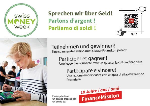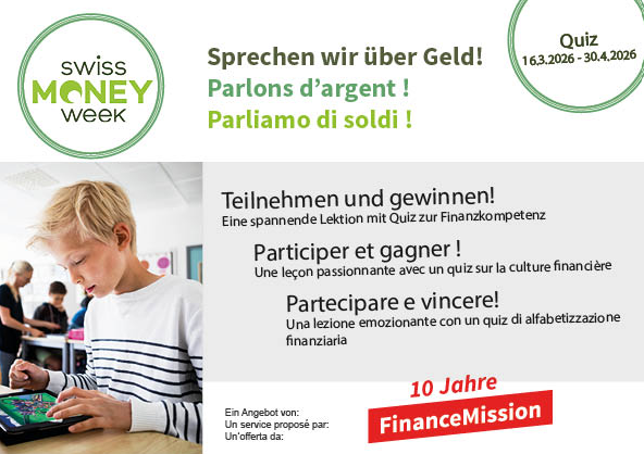 Der Verein FinanceMission unterstützt Lehrpersonen bei der Vermittlung finanzieller Allgemeinbildung und stellt ein auf die Lehrpläne abgestimmtes Angebot für den Schulunterricht im Zyklus 3 zur Verfügung.