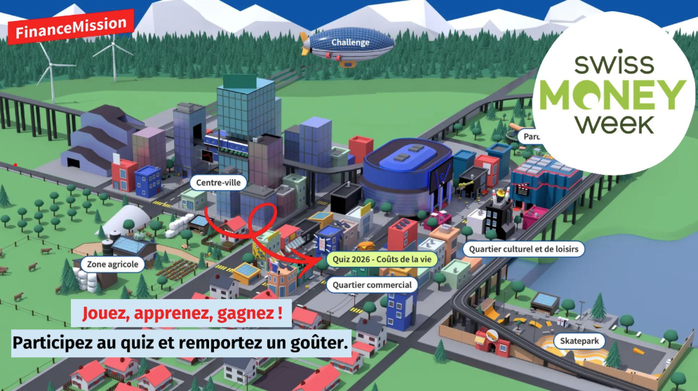 À cette occasion, www.financemissionworld.ch met en ligne un quiz passionnant sur le thème des « coûts de la vie ». Le quiz sera accessible à toutes les classes du 16 mars 2026 à fin avril 2026.